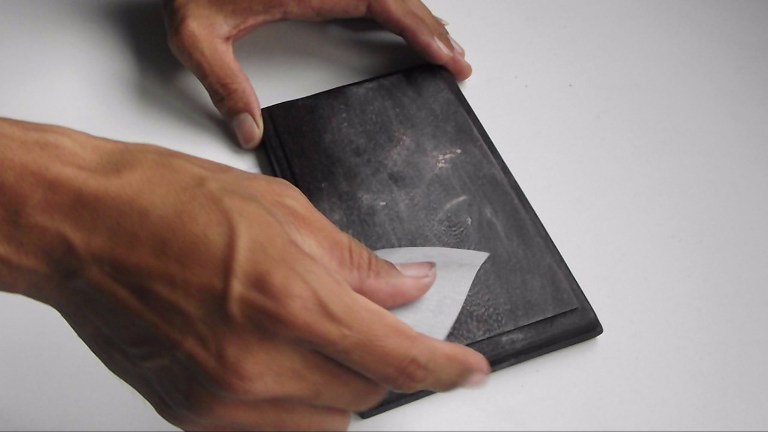 - Gunakan lap bersih yang sudah dibasahi dengan air, gosokkan pada bagian-bagian yang diinginkan sampai tampak lapisan/warna di bawahnya agar kesan kayu antik makin terlihat.