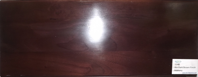 Warna finishing kayu dark brown, seperti namanya hasil finishing ini menampilkan warna coklat tua kehitaman namun jika dilihat lebih dekat close-up akan tampak coklat kemerahan. Warna ini umumnya diterapkan dengan type lapisan wood coating close pore atau open pore dengan tingkat sheen level semi gloss sampai dengan gloss finish. Beberapa orang mungkin mencoba menampilkan warna dark brown topcoat doft atau matt namun cukup jarang ditemui.